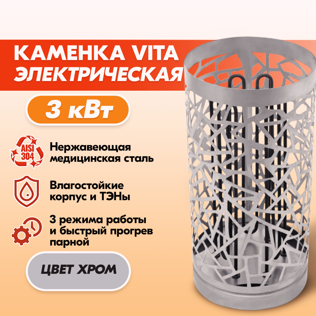 Электрокаменка VITA 3 кВт нерж. в Кемерове | Доставка по России