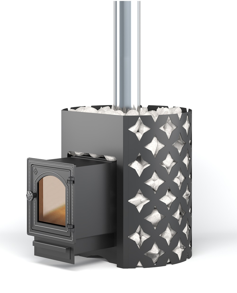 Кожух для открытой каменки диаметром 620 миллиметров вмещает в себя до 140 килограммов камней крупной и средней фракции.