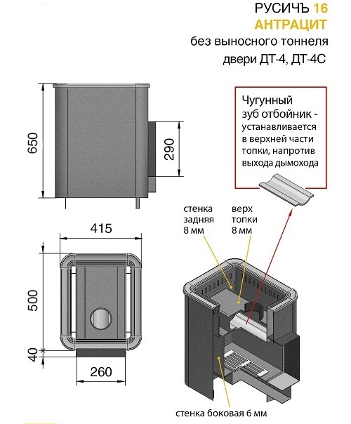 Технические характеристики банной печи Русичъ:
