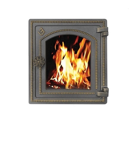 Чугунная дверца топки с термостойким стеклом для наблюдения за процессом горения дров;