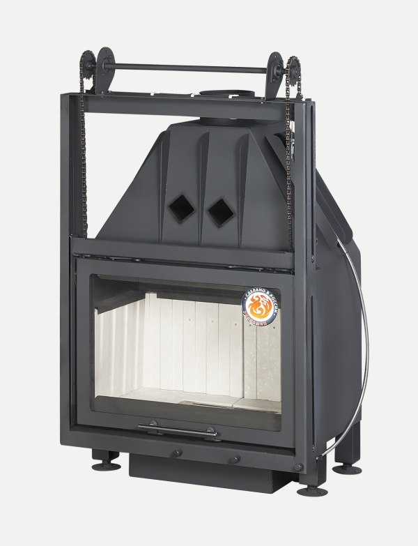 •Высокий дымосборник и пламярассекатель не позволяют продуктам горения попадать в помещение  при открывании дверцы.