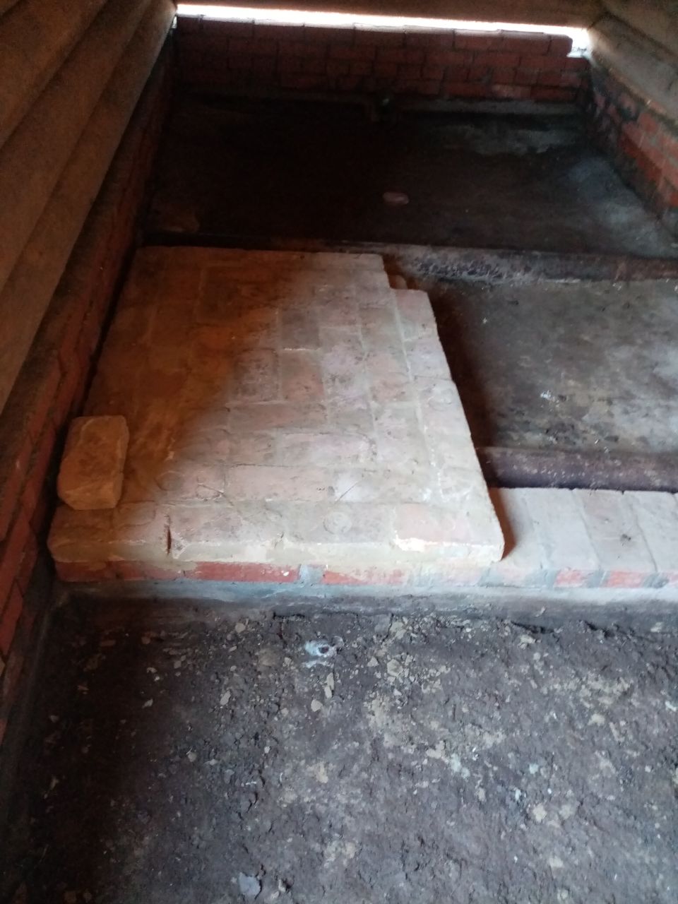Монтаж банной печи Атмосфера с кирпичным порталом и дымоходом